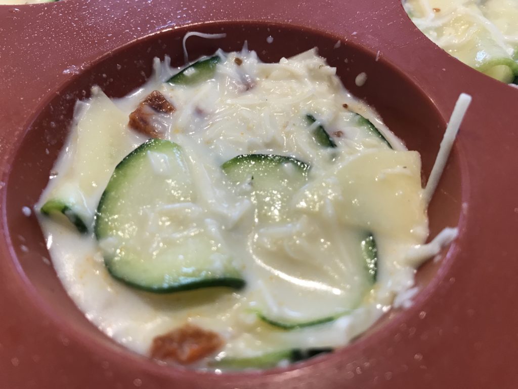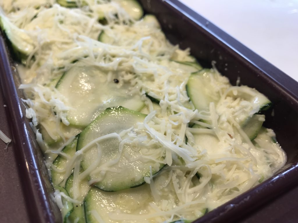 Mettre la farce de courgettes dans le plat.